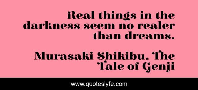 This page presents the quote "Real things in the darkness seem no realer than dreams.". Author of this quote is Murasaki Shikibu, The Tale of Genji. This quote is about appearance, darkness, dreams, reality,.