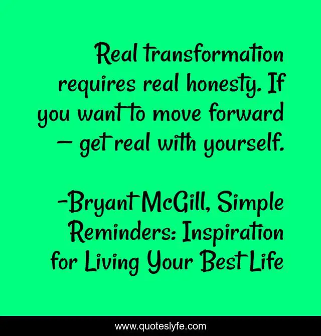 "Bryant McGill, Simple Reminders: Inspiration for Living Your Best Life Quotes." Quoteslyfe.com, 2025. Fri. 05 Dec. 2025. <https://www.quoteslyfe.com/quote/Real-transformation-requires-real-honesty-If-you-166209>.