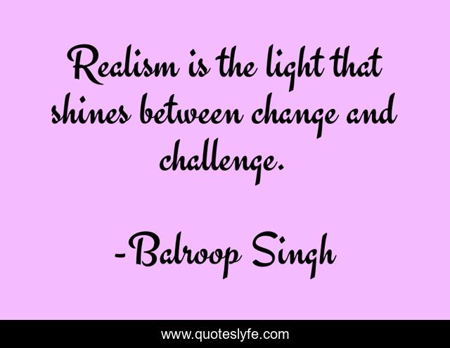 This page presents the quote "Realism is the light that shines between change and challenge.". Author of this quote is Balroop Singh. This quote is about light, realism, wisdom,.