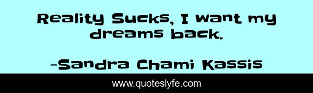 "Sandra Chami Kassis Quotes." Quoteslyfe.com, 2025. Fri. 05 Dec. 2025. <https://www.quoteslyfe.com/quote/Reality-Sucks-I-want-my-dreams-back-110819>.