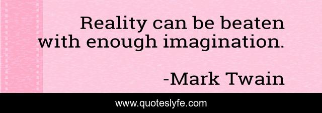 This page presents the quote "Reality can be beaten with enough imagination.". Author of this quote is Mark Twain. This quote is about imagination, reality,.
