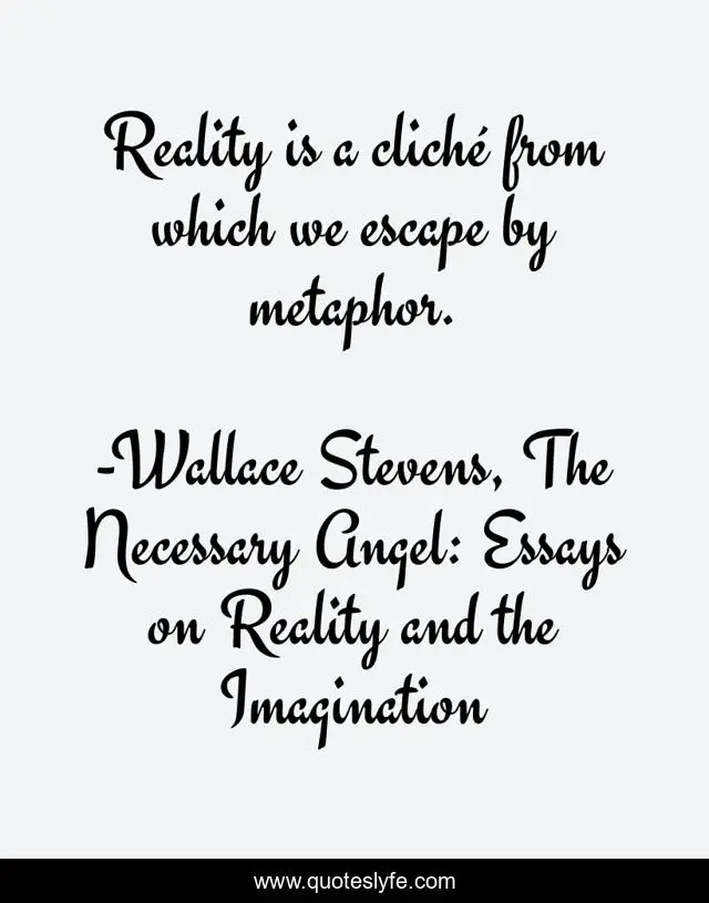 "Wallace Stevens, The Necessary Angel: Essays on Reality and the Imagination Quotes." Quoteslyfe.com, 2025. Fri. 05 Dec. 2025. <https://www.quoteslyfe.com/quote/Reality-is-a-clich-from-which-we-93340>.