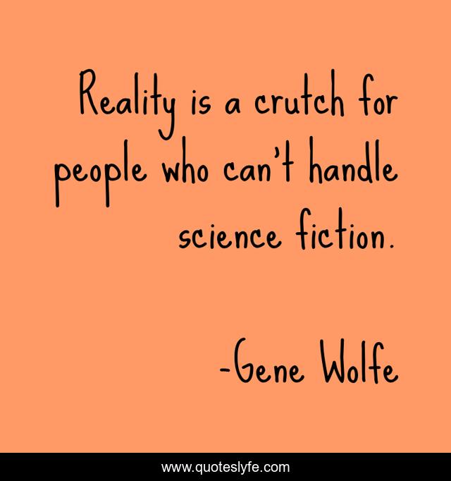 This page presents the quote "Reality is a crutch for people who can't handle science fiction.". Author of this quote is Gene Wolfe. This quote is about youtube, science-fiction, reality,.