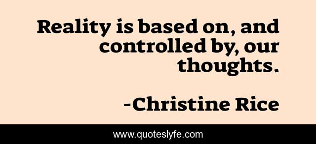 This page presents the quote "Reality is based on, and controlled by, our thoughts.". Author of this quote is Christine Rice. This quote is about thoughts, reality,.