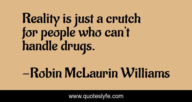 This page presents the quote "Reality is just a crutch for people who can't handle drugs.". Author of this quote is Robin McLaurin Williams. This quote is about drugs, addiction, humor, reality,.