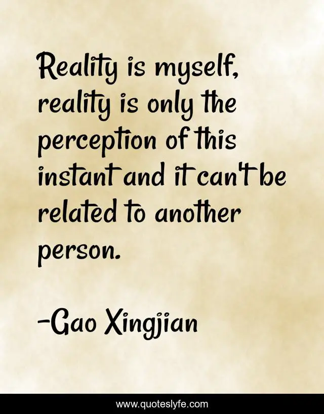 This page presents the quote "Reality is myself, reality is only the perception of this instant and it can't be related to another person.". Author of this quote is Gao Xingjian. .