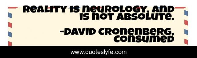 "David Cronenberg, Consumed Quotes." Quoteslyfe.com, 2025. Fri. 05 Dec. 2025. <https://www.quoteslyfe.com/quote/Reality-is-neurology-and-is-not-absolute-94187>.