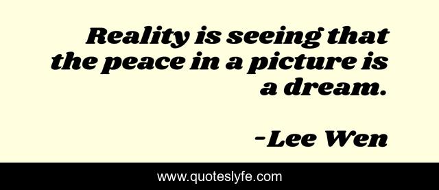 This page presents the quote "Reality is seeing that the peace in a picture is a dream.". Author of this quote is Lee Wen. .