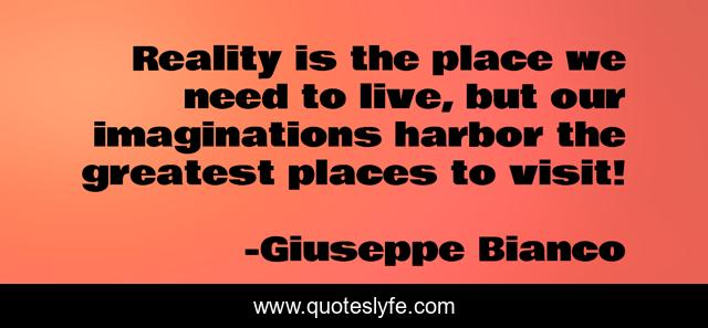 This page presents the quote "Reality is the place we need to live, but our imaginations harbor the greatest places to visit!". Author of this quote is Giuseppe Bianco. .