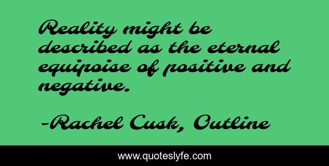 This page presents the quote "Reality might be described as the eternal equipoise of positive and negative.". Author of this quote is Rachel Cusk, Outline. .