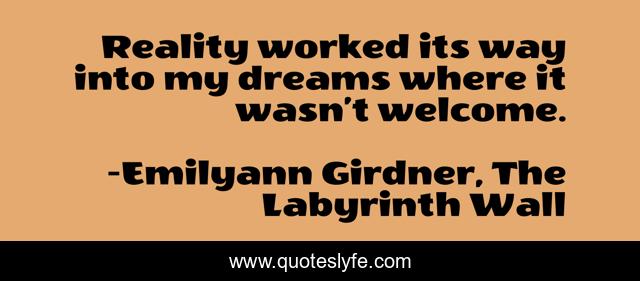 "Emilyann Girdner, The Labyrinth Wall Quotes." Quoteslyfe.com, 2025. Fri. 05 Dec. 2025. <https://www.quoteslyfe.com/quote/Reality-worked-its-way-into-my-dreams-93979>.