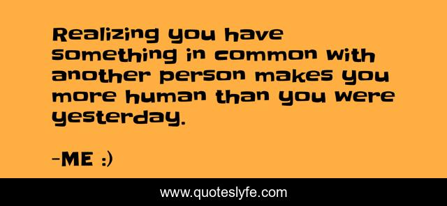 This page presents the quote "Realizing you have something in common with another person makes you more human than you were yesterday.". Author of this quote is ME :). This quote is about me, another, yesterday, person, common, human, realize, something,.