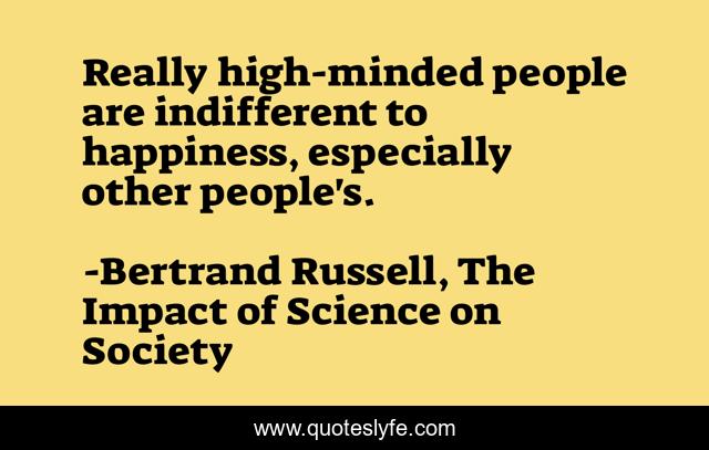 This page presents the quote "Really high-minded people are indifferent to happiness, especially other people's.". Author of this quote is Bertrand Russell, The Impact of Science on Society. .