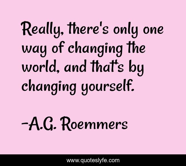 This page presents the quote "Really, there's only one way of changing the world, and that's by changing yourself.". Author of this quote is A.G. Roemmers. This quote is about growth, change,.
