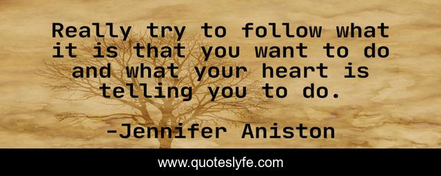 This page presents the quote "Really try to follow what it is that you want to do and what your heart is telling you to do.". Author of this quote is Jennifer Aniston. This quote is about heart, destiny,.