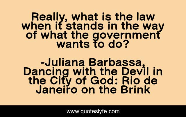 This page presents the quote "Really, what is the law when it stands in the way of what the government wants to do?". Author of this quote is Juliana Barbassa, Dancing with the Devil in the City of God: Rio de Janeiro on the Brink. This quote is about law, government,.