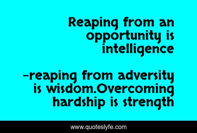 This page presents the quote "Reaping from an opportunity is intelligence". Author of this quote is reaping from adversity is wisdom.Overcoming hardship is strength. .