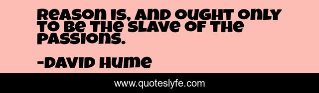 This page presents the quote "Reason is, and ought only to be the slave of the passions.". Author of this quote is David Hume. This quote is about reason, philosophy, emotions,.