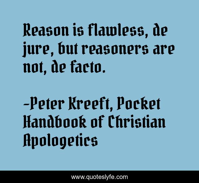 "Peter Kreeft, Pocket Handbook of Christian Apologetics Quotes." Quoteslyfe.com, 2025. Fri. 05 Dec. 2025. <https://www.quoteslyfe.com/quote/Reason-is-flawless-de-jure-but-reasoners-189638>.