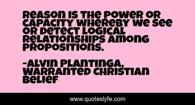 This page presents the quote "Reason is the power or capacity whereby we see or detect logical relationships among propositions.". Author of this quote is Alvin Plantinga, Warranted Christian Belief. .