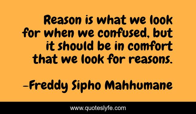 This page presents the quote "Reason is what we look for when we confused, but it should be in comfort that we look for reasons.". Author of this quote is Freddy Sipho Mahhumane. .