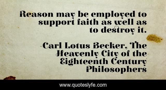 This page presents the quote "Reason may be employed to support faith as well as to destroy it.". Author of this quote is Carl Lotus Becker, The Heavenly City of the Eighteenth Century Philosophers. This quote is about religion, reason, philosophy,.