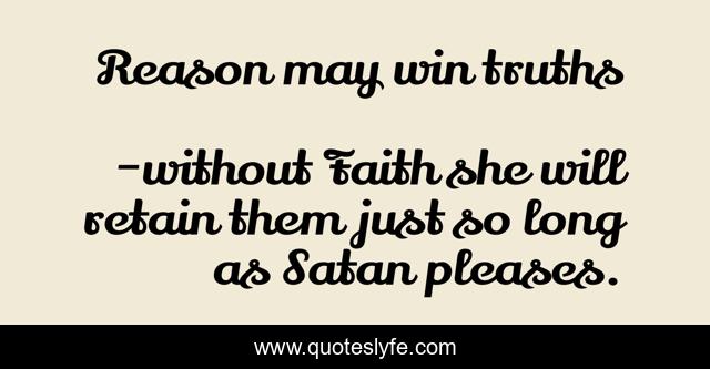 "without Faith she will retain them just so long as Satan pleases. Quotes." Quoteslyfe.com, 2025. Fri. 05 Dec. 2025. <https://www.quoteslyfe.com/quote/Reason-may-win-truths-62049>.