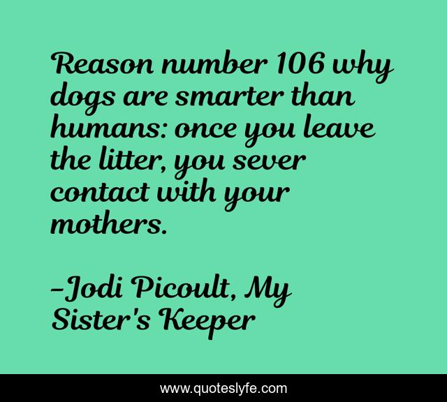 "Jodi Picoult, My Sister's Keeper Quotes." Quoteslyfe.com, 2025. Mon. 08 Dec. 2025. <https://www.quoteslyfe.com/quote/Reason-number-106-why-dogs-are-smarter-55651>.