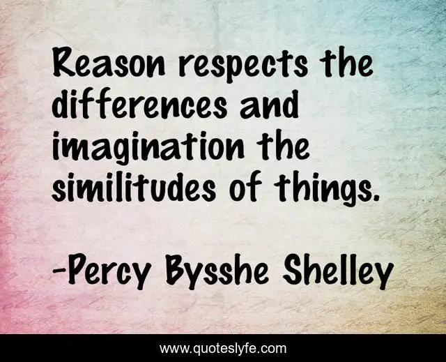 "Percy Bysshe Shelley Quotes." Quoteslyfe.com, 2025. Sat. 06 Dec. 2025. <https://www.quoteslyfe.com/quote/Reason-respects-the-differences-and-imagination-the-268925>.