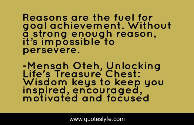 "Mensah Oteh, Unlocking Life's Treasure Chest: Wisdom keys to keep you inspired, encouraged, motivated and focused Quotes." Quoteslyfe.com, 2025. Sun. 07 Dec. 2025. <https://www.quoteslyfe.com/quote/Reasons-are-the-fuel-for-goal-achievement-15852>.