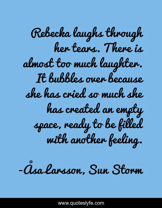 This page presents the quote "Rebecka laughs through her tears. There is almost too much laughter. It bubbles over because she has cried so much she has created an empty space, ready to be filled with another feeling.". Author of this quote is Ã…sa Larsson, Sun Storm. .