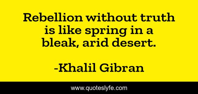 This page presents the quote "Rebellion without truth is like spring in a bleak, arid desert.". Author of this quote is Khalil Gibran. This quote is about spring, desert, truth is,.
