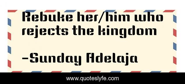 This page presents the quote "Rebuke her/him who rejects the kingdom". Author of this quote is Sunday Adelaja. This quote is about kingdom, rebuke, principle, truth, reject,.
