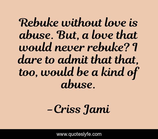 "Criss Jami Quotes." Quoteslyfe.com, 2025. Mon. 08 Dec. 2025. <https://www.quoteslyfe.com/quote/Rebuke-without-love-is-abuse-But-a-99572>.