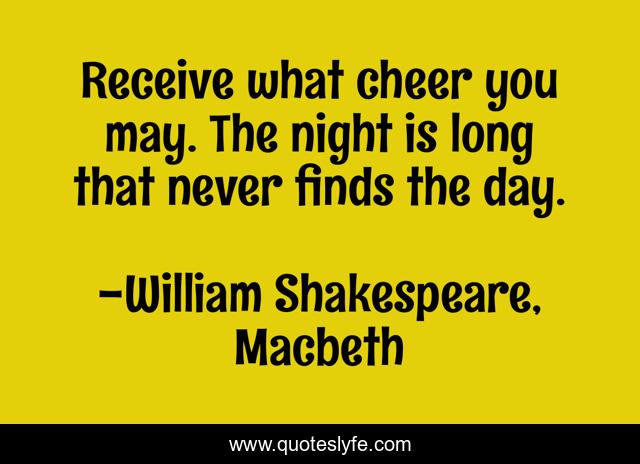 "William Shakespeare, Macbeth Quotes." Quoteslyfe.com, 2025. Mon. 08 Dec. 2025. <https://www.quoteslyfe.com/quote/Receive-what-cheer-you-may-The-night-226220>.
