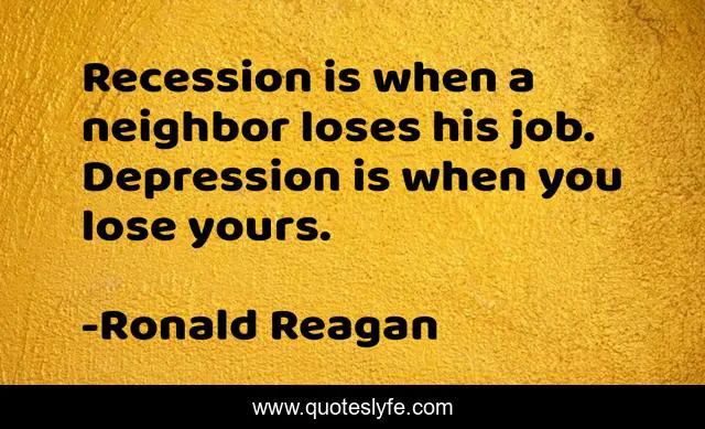 This page presents the quote "Recession is when a neighbor loses his job. Depression is when you lose yours.". Author of this quote is Ronald Reagan. This quote is about job, depression, neighbor,.