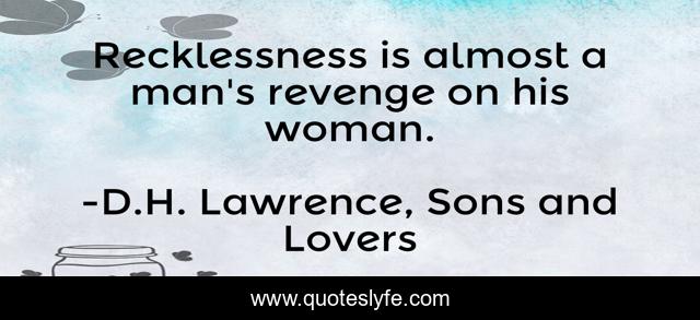 This page presents the quote "Recklessness is almost a man's revenge on his woman.". Author of this quote is D.H. Lawrence, Sons and Lovers. .