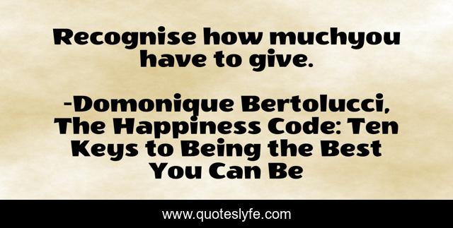 "Domonique Bertolucci, The Happiness Code: Ten Keys to Being the Best You Can Be Quotes." Quoteslyfe.com, 2025. Fri. 05 Dec. 2025. <https://www.quoteslyfe.com/quote/Recognise-how-muchyou-have-to-give-215312>.
