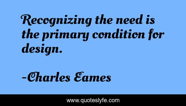This page presents the quote "Recognizing the need is the primary condition for design.". Author of this quote is Charles Eames. This quote is about need, recognizing, condition,.