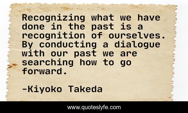 This page presents the quote "Recognizing what we have done in the past is a recognition of ourselves. By conducting a dialogue with our past we are searching how to go forward.". Author of this quote is Kiyoko Takeda. .