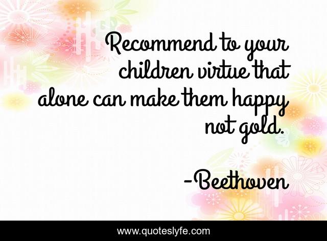 This page presents the quote "Recommend to your children virtue that alone can make them happy not gold.". Author of this quote is Beethoven. .