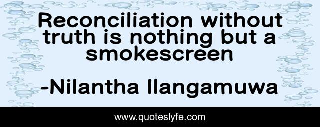 This page presents the quote "Reconciliation without truth is nothing but a smokescreen". Author of this quote is Nilantha Ilangamuwa. This quote is about politics, sri-lanka,.