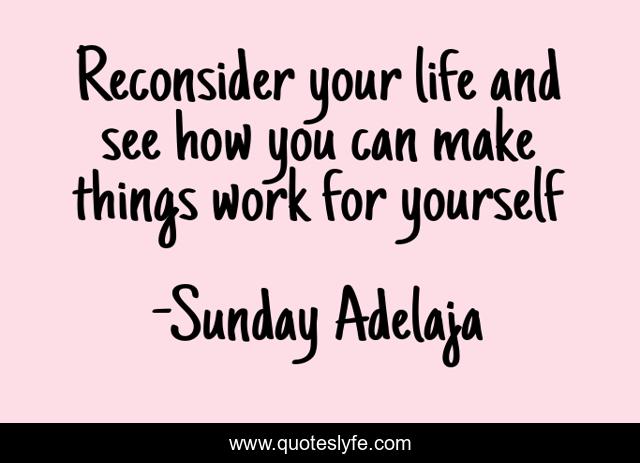 This page presents the quote "Reconsider your life and see how you can make things work for yourself". Author of this quote is Sunday Adelaja. This quote is about love, people, money, principles, employment, worship, jobless, service, god,.