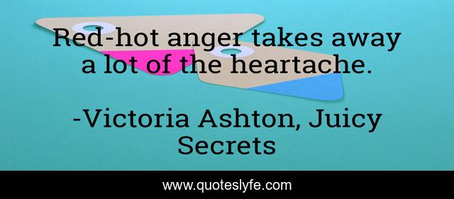 This page presents the quote "Red-hot anger takes away a lot of the heartache.". Author of this quote is Victoria Ashton, Juicy Secrets. This quote is about anger, heartache,.