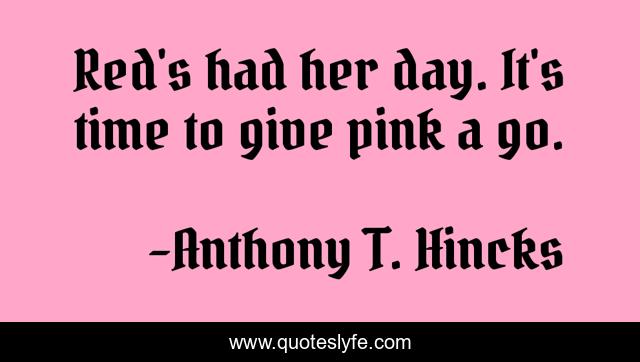 This page presents the quote "Red's had her day. It's time to give pink a go.". Author of this quote is Anthony T. Hincks. This quote is about pink, her-day, her, color, philosophy, a-go, colours, day, red,.
