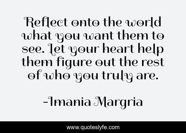 "Imania Margria Quotes." Quoteslyfe.com, 2025. Mon. 08 Dec. 2025. <https://www.quoteslyfe.com/quote/Reflect-onto-the-world-what-you-want-47789>.