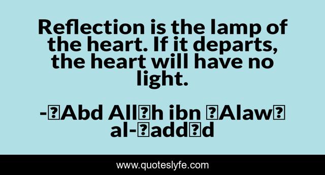 This page presents the quote "Reflection is the lamp of the heart. If it departs, the heart will have no light.". Author of this quote is ʻAbd Allāh ibn ʻAlawī al-Ḥaddād. This quote is about religion, islam, spirituality, sufism,.