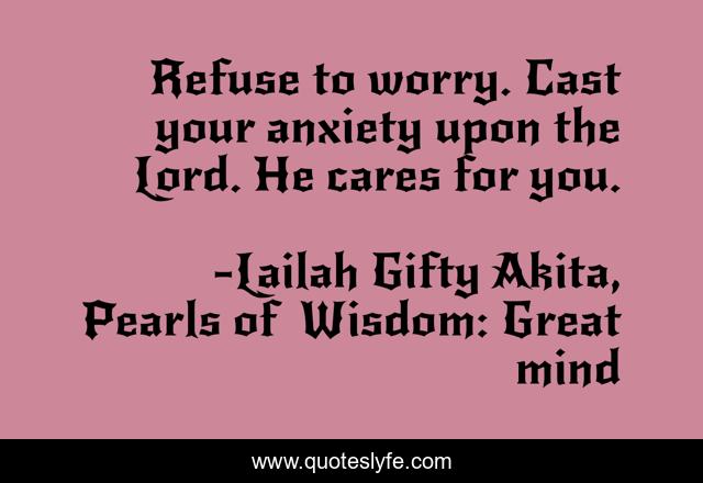 "Lailah Gifty Akita, Pearls of Wisdom: Great mind Quotes." Quoteslyfe.com, 2025. Fri. 05 Dec. 2025. <https://www.quoteslyfe.com/quote/Refuse-to-worry-Cast-your-anxiety-upon-147724>.