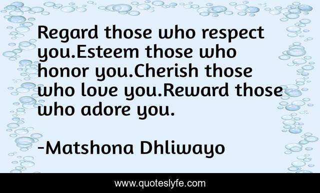 "Matshona Dhliwayo Quotes." Quoteslyfe.com, 2025. Fri. 05 Dec. 2025. <https://www.quoteslyfe.com/quote/Regard-those-who-respect-you-Esteem-those-48655>.