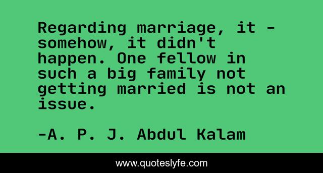 "A. P. J. Abdul Kalam Quotes." Quoteslyfe.com, 2025. Sat. 06 Dec. 2025. <https://www.quoteslyfe.com/quote/Regarding-marriage-it-somehow-it-didn-t-298931>.